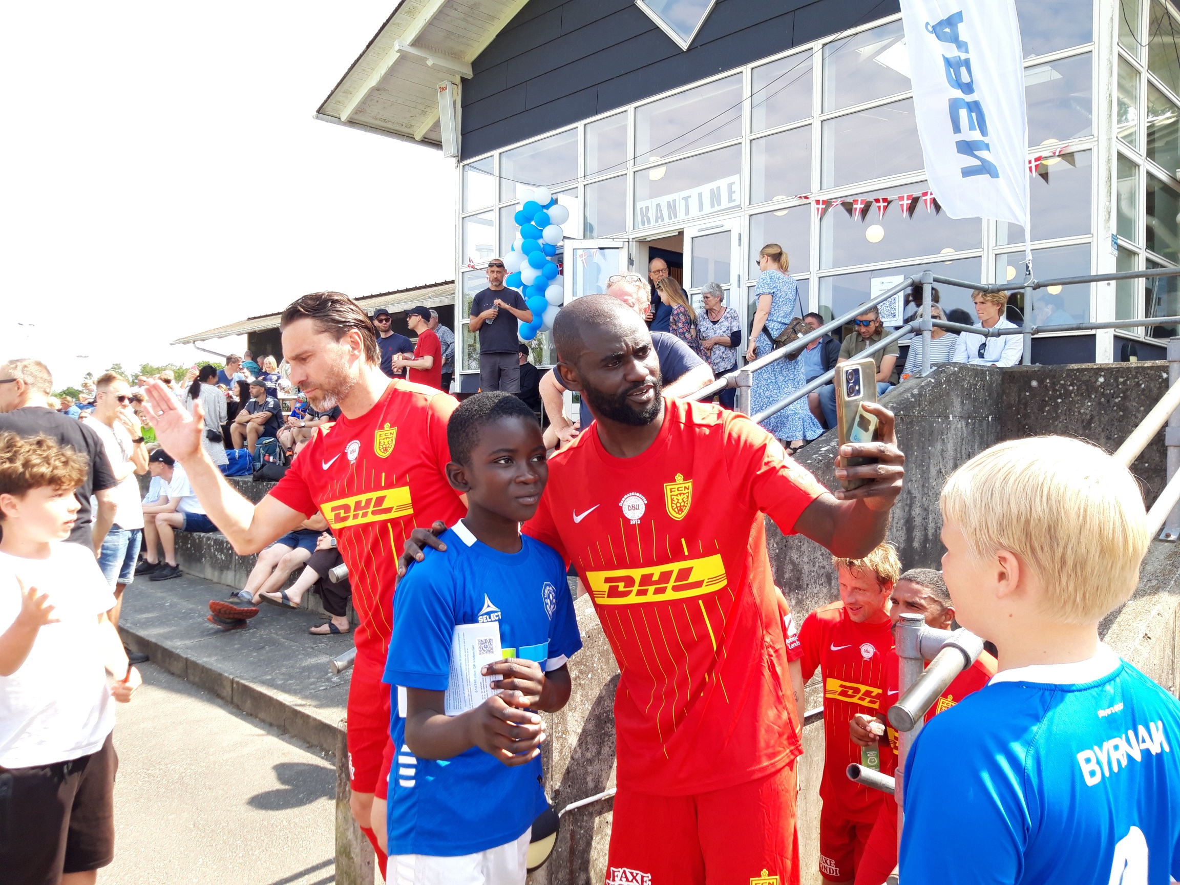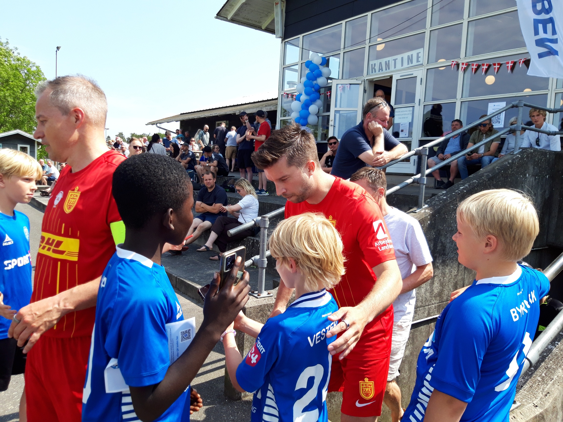 Nicolai Stokholm og Andreas Laudrup omkranset af autografsøgende VB-drenge, og FCN-spillerne tog sig god tid til at sprede glæde til ungdommen.